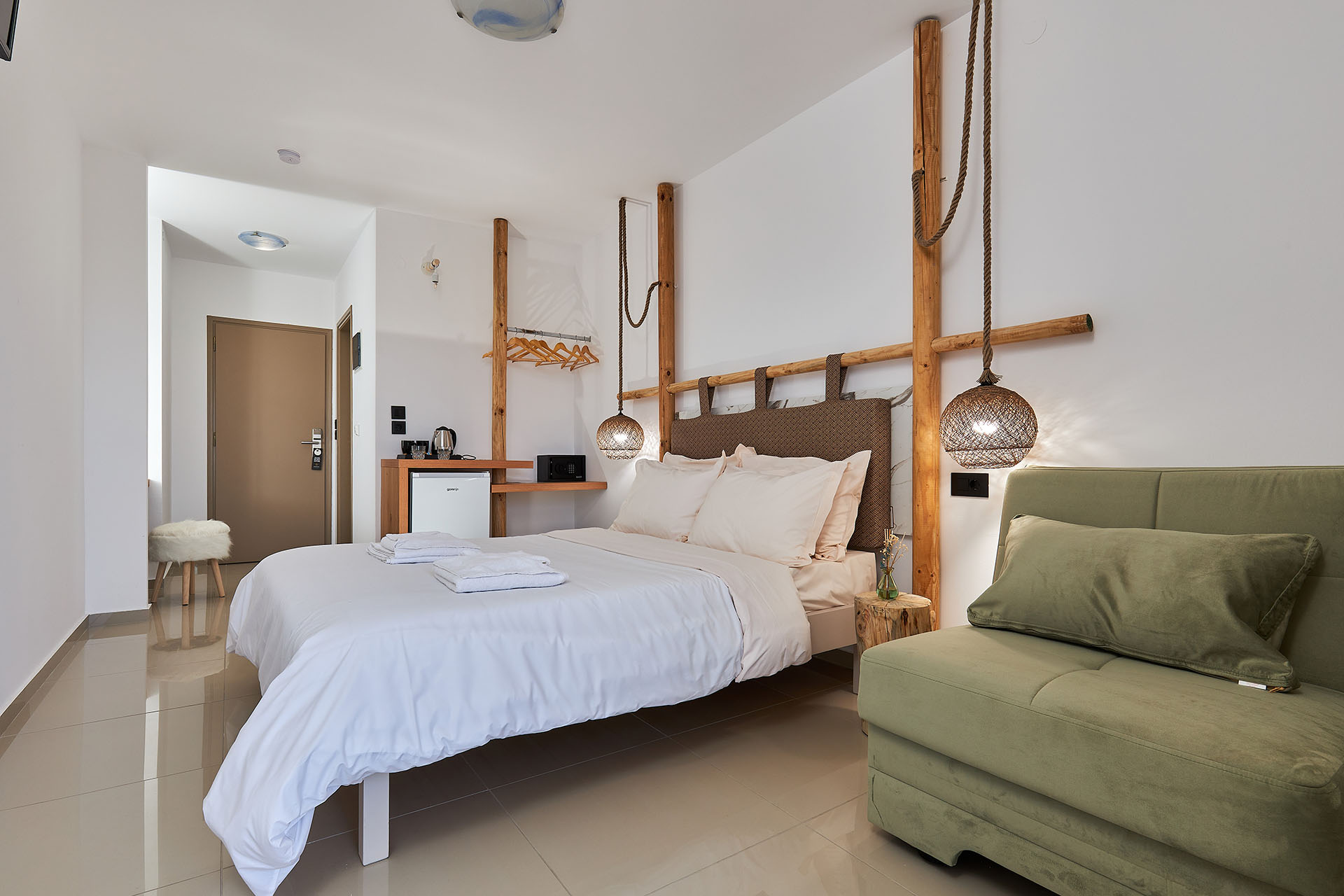 Indulge in our Junior Suites, perfect for up to four guests with two separate sleeping areas, providing privacy and elegance. Along with the full suite of amenities, these suites offer expansive views and are equipped with: